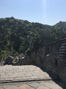 Day #3 Traveling an hour and half north of Beijing, we arrived at the highlight of my trip – the Great Wall! We were at the Mutianyu section/location, which is quiet well preserved. Our amazing guide had us ride the chairlifts up to the wall to minimize some of the steep walking and to add some fun to the adventure. Once at the Wall, I was in awe of its massive size and endless rolling length. (Note: walking on the Wall is not flat – it is quite steep and very rolling). The one section I walked had me gasping for air. To add some more fun to the adventure, I took the toboggan chair back down (great fun and very easy – you are on a winding track).