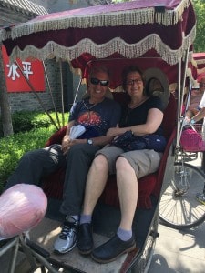 My last full day in Beijing started by riding the subway. Beijing has a very extensive subway system, and due to language challenges, it does seem overwhelming. However, the system is fairly well laid out, and with a little patience and confidence, it can easily be handled. Our first stop was the Skewed Tobacco Pouch Street, followed by a long, and I mean long and very steep, stairway climb to the Drum Tower. While in the Tower, we got to see a performance of the drums. This fun experience was followed by a visit to a local family’s home in the Hutong District, riding a rickshaw through the narrow streets and lunch in another local family’s home. For our final stop, our amazing William led us by subway to the Pearl Factory, a 5-story shopping complex where you literally can shop and bargain till you drop. Totally worn out, we made our way back to the Hotel on our own by way of the subway. I was proud of myself as I braved the daunting vending machine for my subway ticket!